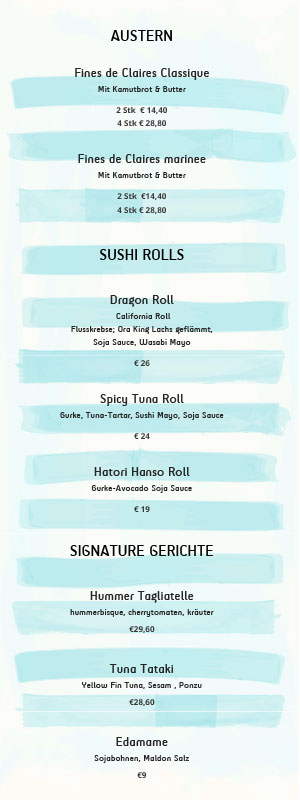 Siganture Dish Gerichte. See Sushi. Muscheln und